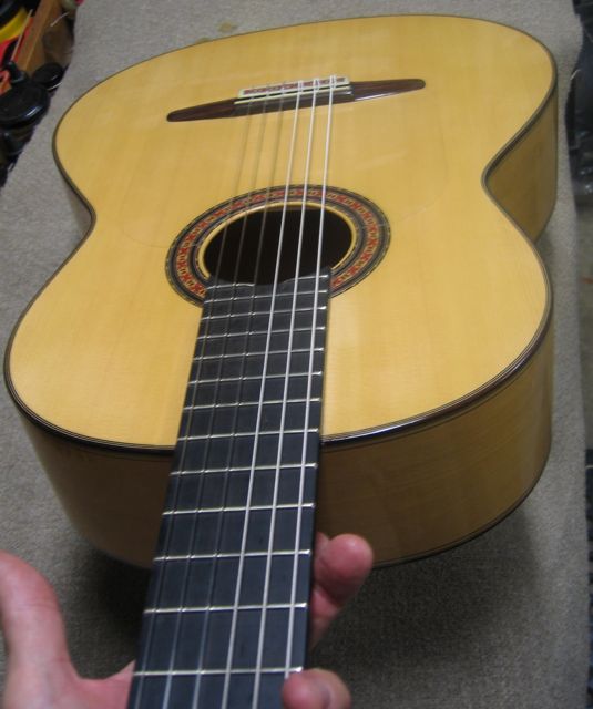 This guitar has been in my personal collection, it has been kept at a stable relative humidity of around 50% and is in excellent condition. It has the distinctive Manzanero sound. At this time it is not for sale. I have a sister instrument which has a beautiful golden color which was lacquer finished by Felix in Spain. It is for $12,000 plus tax. I will consider cash with an interesting trade in.