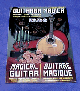 The Guitarra Magica by Eurico Cebolo (now permanently discontinued) was written in Portuguese, English and French. It was a very basic method (46 pages). It included a very extensive chord chart in all keys, basic chord sequences, and major and minor scales. It included some simple Portuguese songs and a few simple fado variations. It did not adequately describe the right hand techniques for modern Portuguese guitar. It demonstated a right hand arpeggio technique like that used on Spanish classical guitars. Very frankly, my explanation in the internet lesson of the right hand technique is more authentic than what is presented in this book. Nevertheless, this book was a starting point and was of use to someone who wants to learn the basic left hand chords and other introductory information. The new book (book 1) by Cebolo described at the top of the page has solved the deficiencies of the Guitarra Magica.