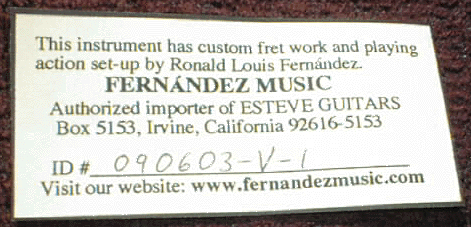 Each guitar we import and sell has been specially prepared in our California workshop to enhance their sound and playability. Guitars which enjoy this special preparation are identified by a Fernandez Music label inside the guitar.