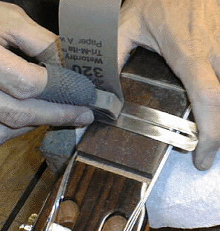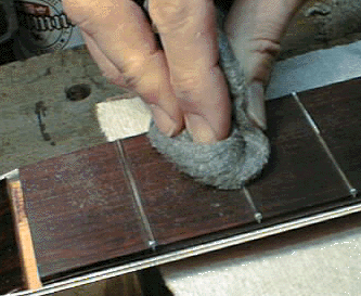 The following step is to polish each fret with very fine steel wool (grade 0000).