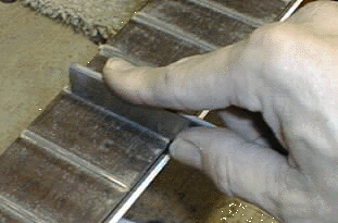 To further smooth the fret ends. I use a small Swiss file which has been made smooth on the bottom. I use this file to cut off the corner of the fret end so it is not abrasive to the finger.