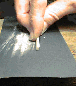 In the photo above I am using a small Japanese power sander to rough sand the saddle. Notice the way I am slanting the saddle against the sanding surface.