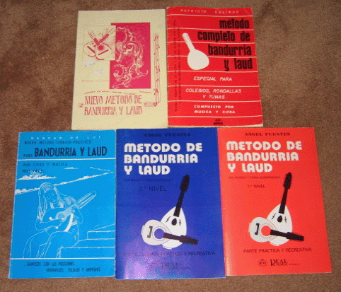 Photos of some traditional method books for the laud and bandurria. At this time I do not have any copies for sale. Perhaps you can find old copies on the internet.